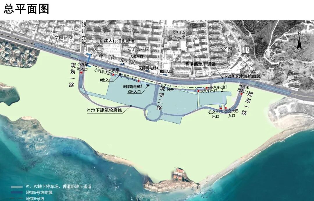 公示信息显示,该项目位于崂山区香港东路以南、石老人海水浴场以东。近期拟在该区域建设地铁5号线延伸段工程石老人站及P1、P2两处地下停车场、香港路地下道路工程(总长约1.5公里)。石老人站共设置4个出入口,两部无障碍电梯,两个安全出口,两组风亭,与周边建构筑物距离均满足相关规范要求。